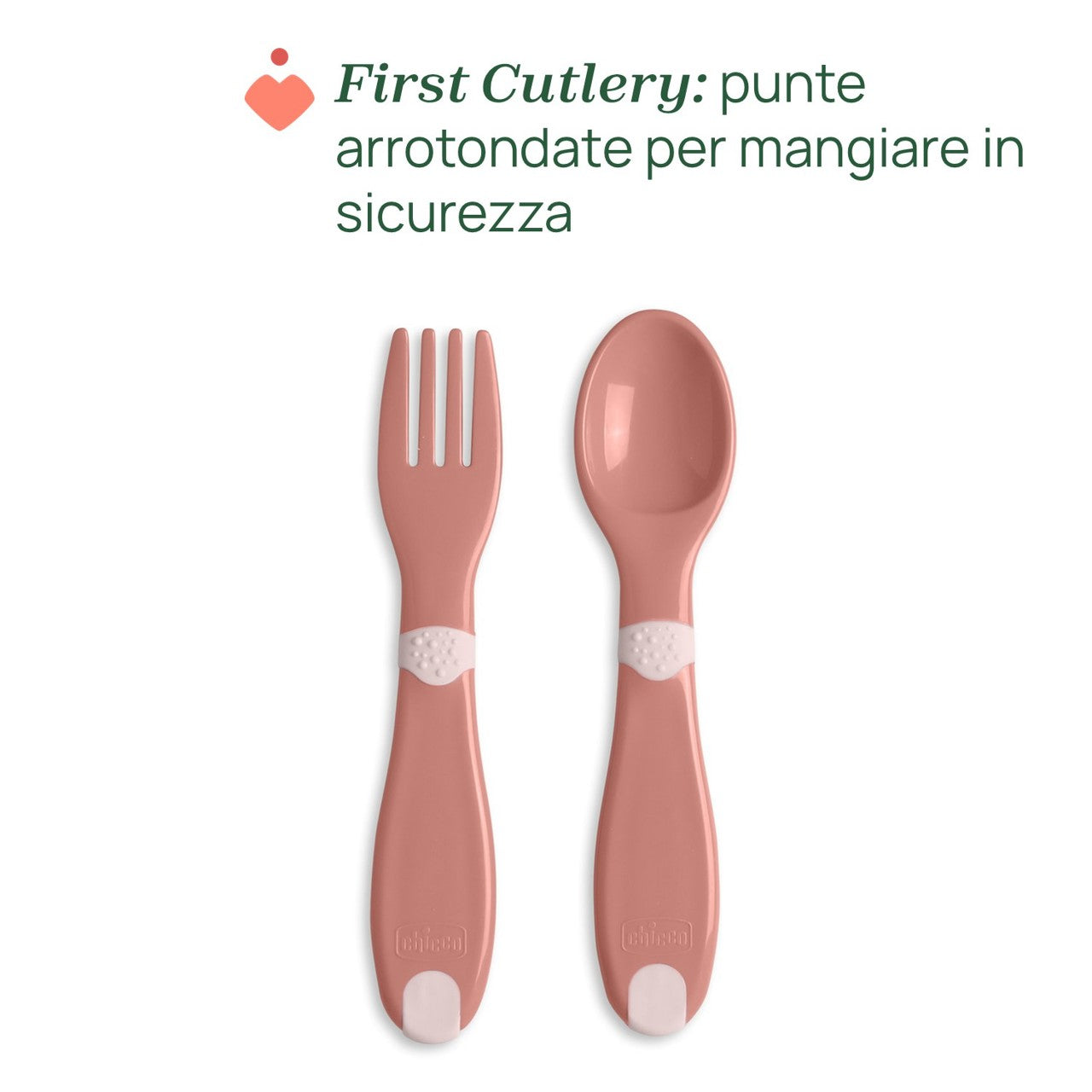 Chicco set pappa, piattini e posate per bambini, rosa, 12+ mesi