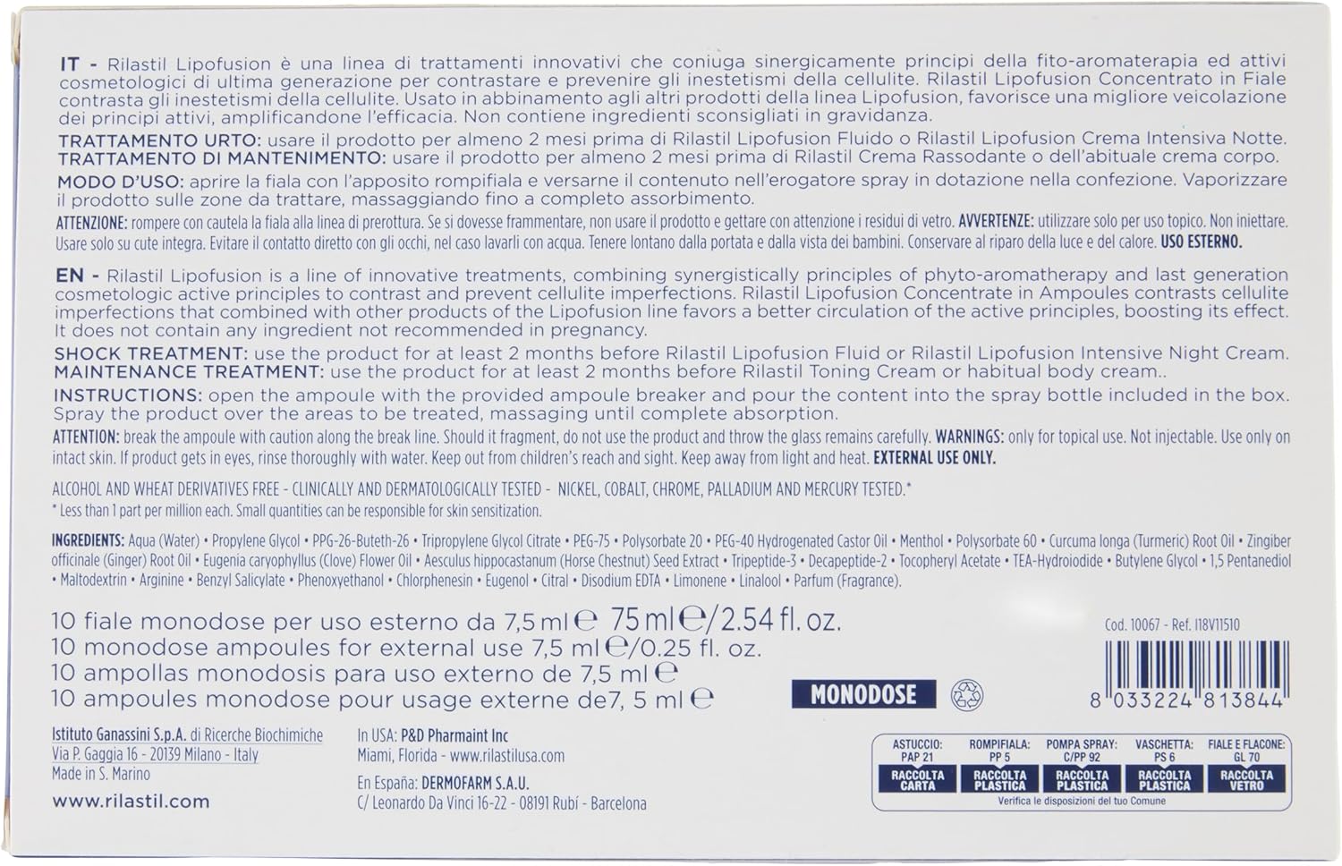 TRATTAMENTO URTO: usare il prodotto per almeno 2 mesi prima di Rilastil Lipofusion Fluido o Rilastil Lipofusion Crema Intensiva Notte.