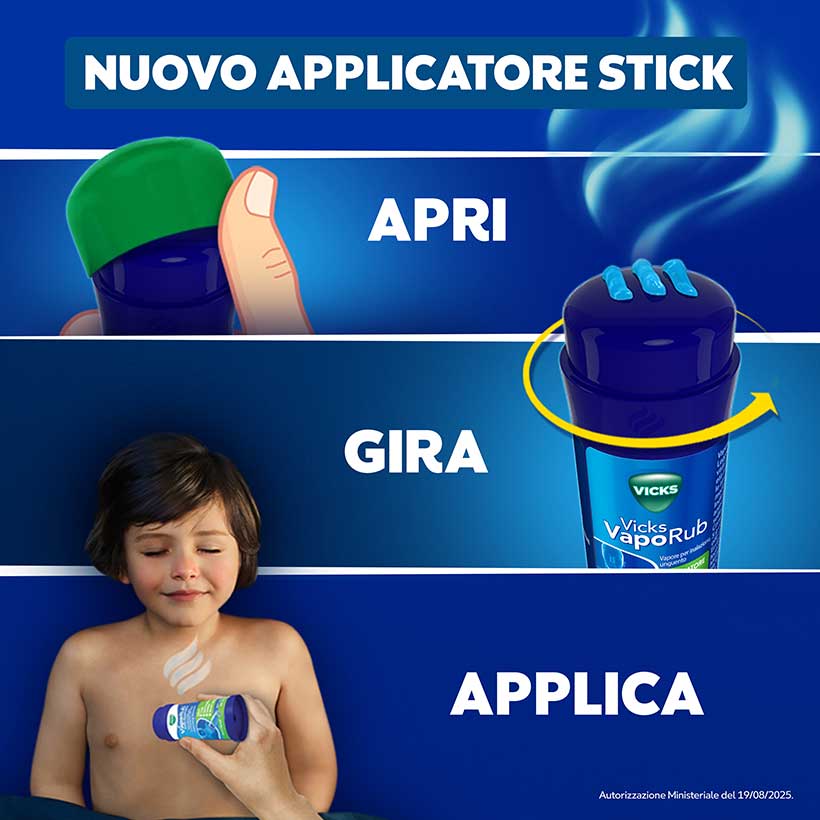 Vicks VapoRub è un unguento per uso inalatorio. Si usa per il trattamento balsamico nelle affezioni delle prime vie respiratorie.